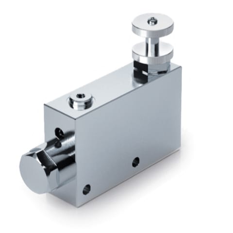 Model Code Flow Rate Porting Max Pressure Description Spec Sheet VRFB-90-14G 25 LPM 1/4" BSPP 350 BAR Needle Valve with Knob Download VRFB-90-38G 40 LPM 3/8" BSPP 350 BAR Needle Valve with Knob Download VRFB-90-12G 50 LPM 1/2" BSPP 350 BAR Needle Valve with Knob Download VRFU-90-14G 25 LPM 1/4" BSPP 350 BAR Throttle & Check with Knob Download VRFU-90-38G 40 LPM 3/8" BSPP 350 BAR Throttle & Check with Knob Download VRFU-90-12G 50 LPM 1/2" BSPP 350 BAR Throttle & Check with Knob Download VRFU-90-34G 80 LPM 3/4" BSPP 320 BAR Throttle & Check with Knob Download VRFU-90-100G 110 LPM 1" BSPP 300 BAR Throttle & Check with Knob Download VRFU-90C-14G 15 LPM 1/4" BSPP 300 BAR Pressure Comp. Flow & Check Download VRFU-90C-38G 17 LPM 3/8" BSPP 300 BAR Pressure Comp. Flow & Check Download VRFU-90C-12G 30 LPM 1/2" BSPP 250 BAR Pressure Comp. Flow & Check Download -